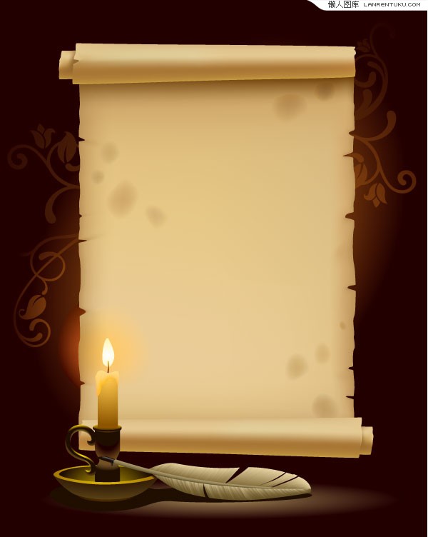 烛灯鹅毛笔的怀旧纸张矢量图素材由软件自学网免费提供下载。