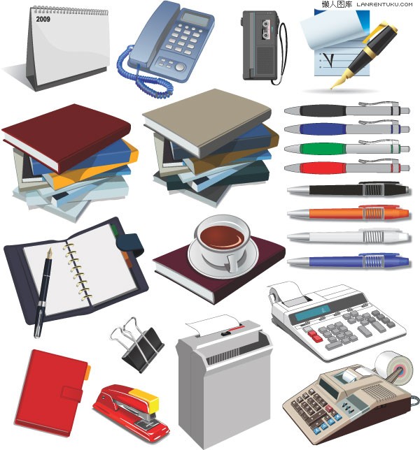 各种常用办公用品矢量图素材由软件自学网免费提供下载。