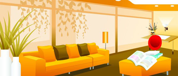 暖色调时尚室内家居矢量图素材由软件自学网免费提供下载。