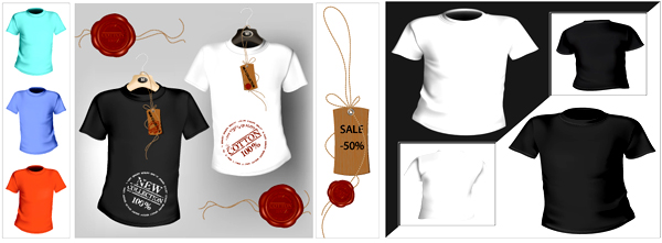多款时尚T恤设计矢量图素材由软件自学网免费提供下载!