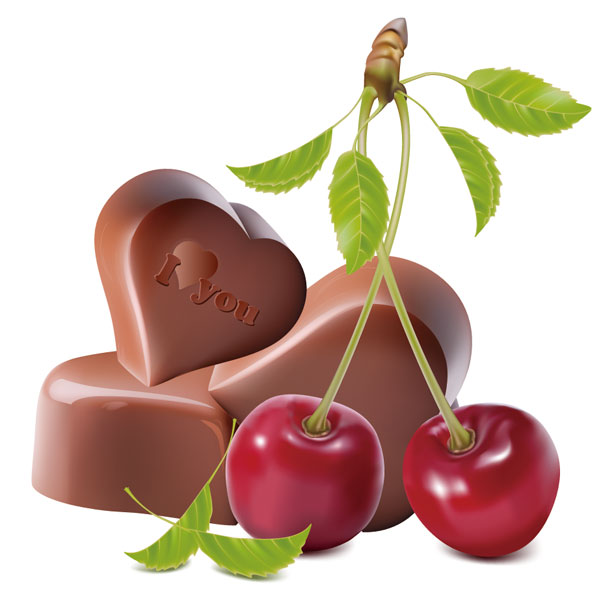 心形巧克力和樱桃矢量图素材由软件自学网免费提供下载。
