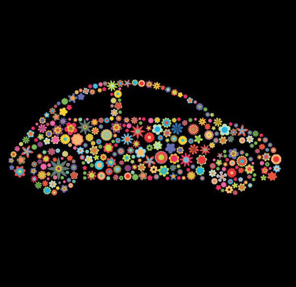 由花朵组成的五彩缤纷可爱小汽车矢量素材下载