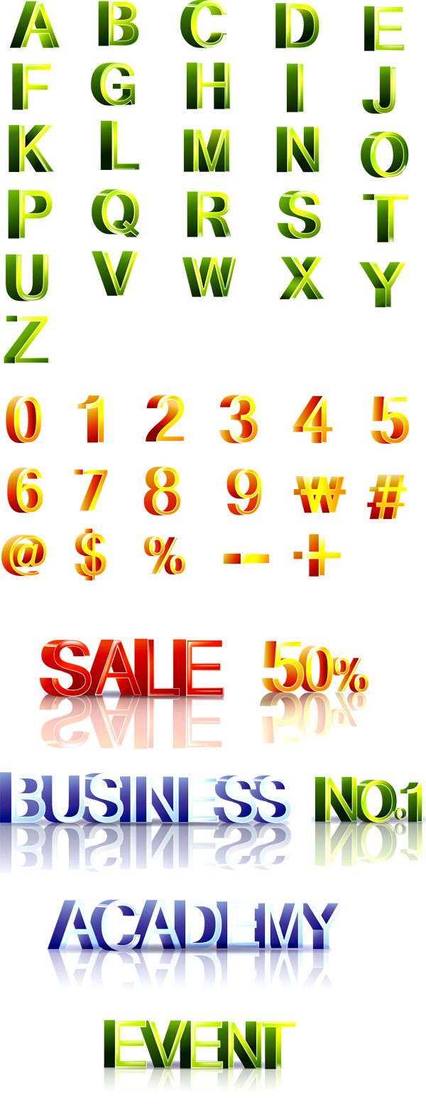 精美立体数字和字母矢量图由软件自学网免费提供下载。
