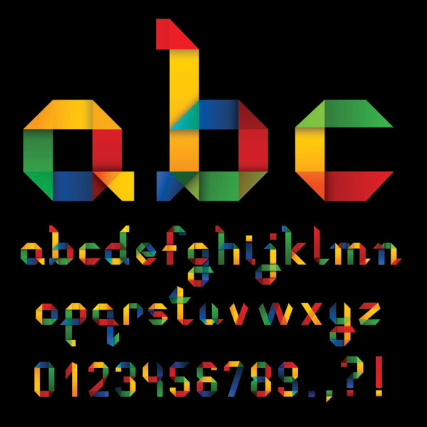 彩色折纸字母和数字矢量图由软件自学网免费提供下载。