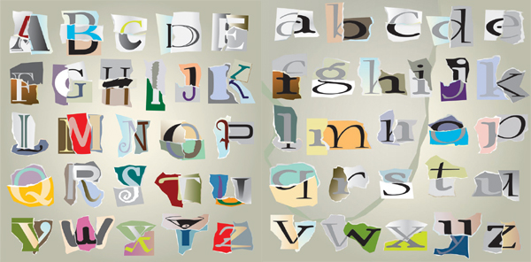 碎纸片拼成的字母矢量图由软件自学网免费提供下载。