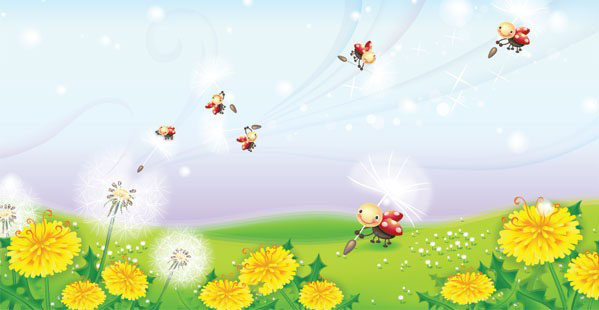 可爱小瓢虫与花朵矢量图由软件自学网免费提供下载