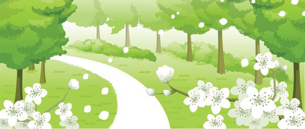 春天的林间小路风景矢量图由软件自学网免费提供下载。