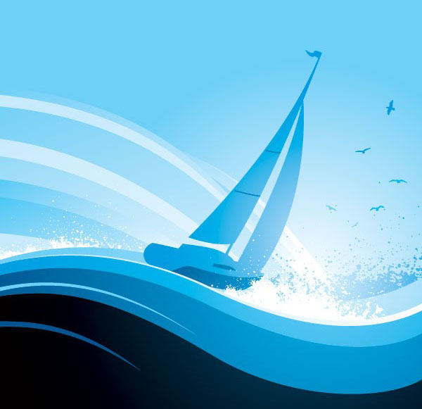 蓝色海洋天空和小船矢量图由软件自学网免费提供下载。