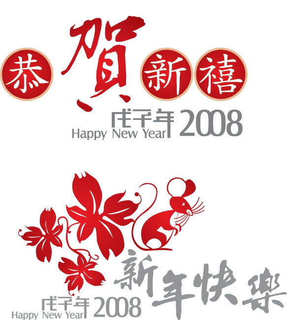 AI格式,含JPG预览图,关键字:新年快乐,戊子年,Happy New Year,恭贺新禧,矢量素材 老鼠,鼠年大吉