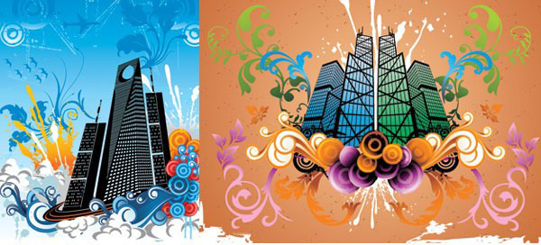 建筑和潮流花纹的矢量图由软件自学网免费提供下载。