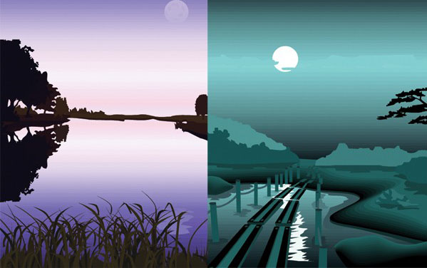 冷色调落日风光矢量图由软件自学网免费提供下载。