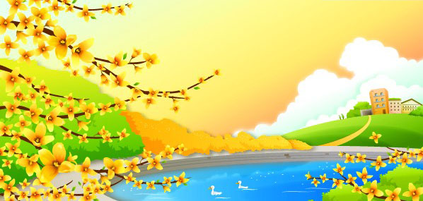 迎春花开户外风光矢量图由软件自学网免费提供下载。