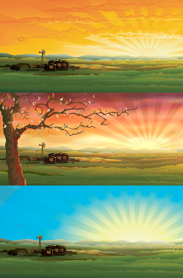 优美的郊外风光矢量图由软件自学网免费提供下载