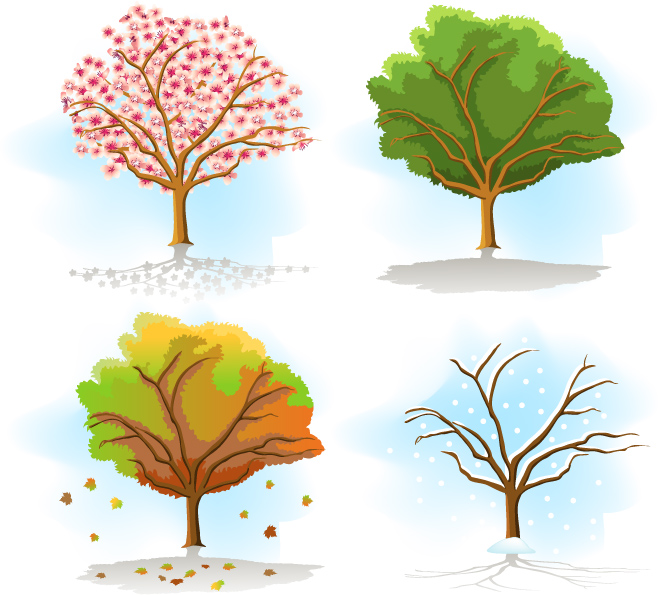 四季转换树木彩绘矢量图