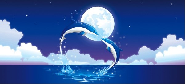 海豚月光浪漫矢量图由软件自学网免费提供下载。