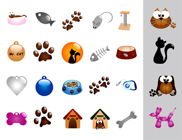 猫狗宠物用品元素矢量图由软件自学网免费提供下载。