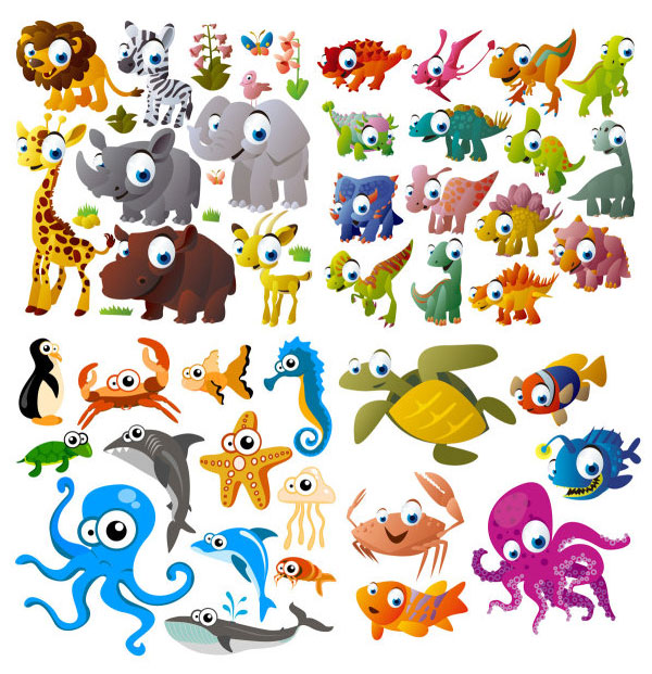 多款可爱的矢量卡通动物矢量图由软件自学网免费提供下载。