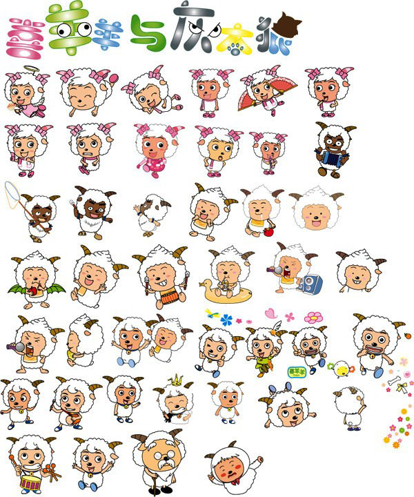喜羊羊与灰太狼经典卡通形象矢量图由软件自学网免费提供下载。