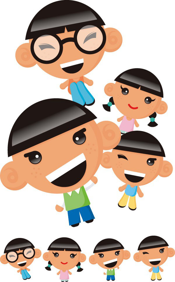 可爱卡通儿童角色矢量图由软件自学网素材免费提供下载。