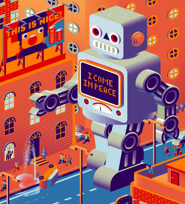 世界卡通机器人矢量图由软件自学网素材免费提供下载。