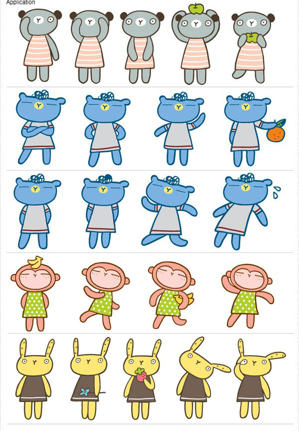 可爱的拟人化卡通动物矢量图由软件自学网素材免费提供下载。
