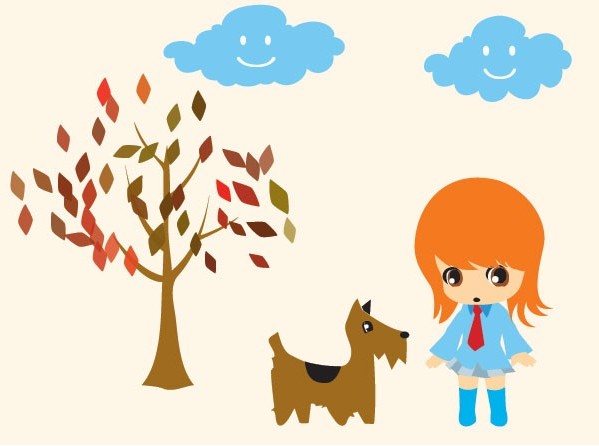 可爱小女孩和狗狗卡通矢量图由软件自学网素材免费提供下载。