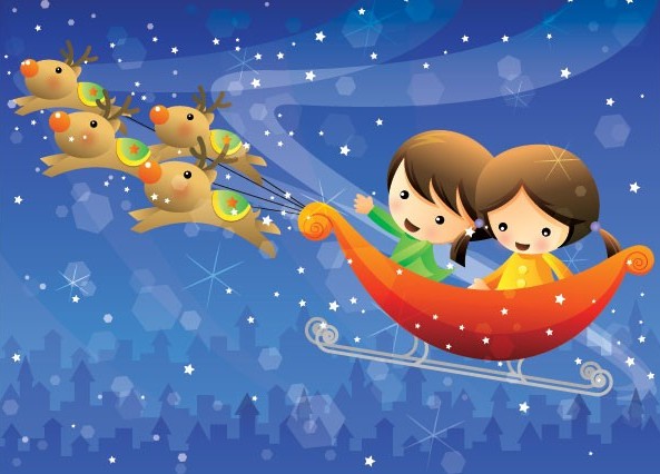 乘坐雪橇的快乐孩子们矢量图由软件自学网素材免费提供下载。