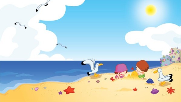 海边快乐玩耍的孩子们矢量图由软件自学网素材免费提供下载。