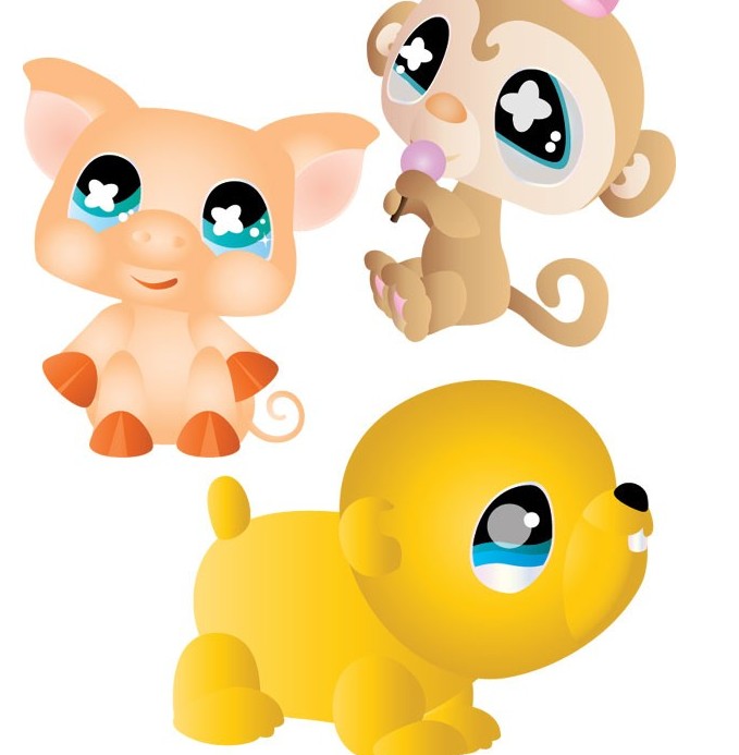 超可爱卡通小猴小猪和小狗矢量图由软件自学网素材免费提供下载。
