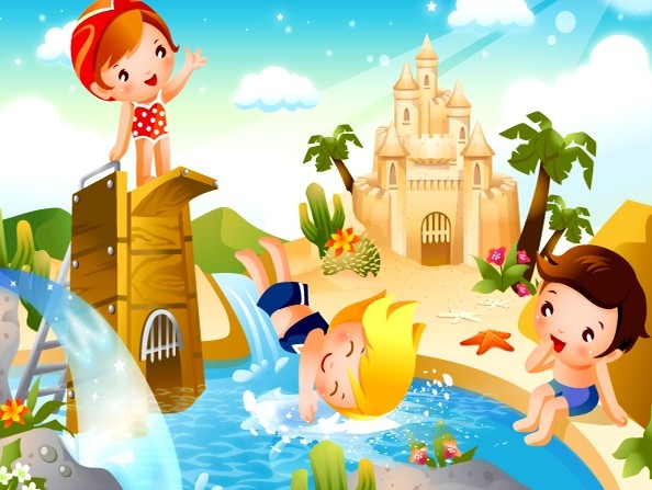 跳水卡通儿童运动矢量图