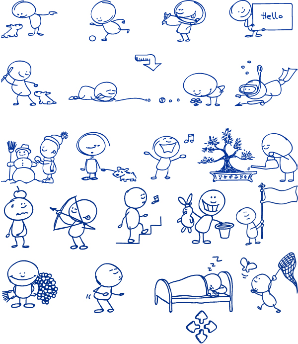 可爱卡通圆珠笔绘画小人儿矢量图