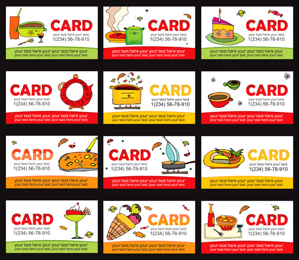 可爱卡通风格食品饮品卡片矢量图由软件自学网免费提供下载。
