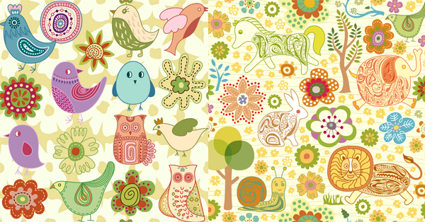 卡通动物树木花朵矢量图由软件自学网免费提供下载。