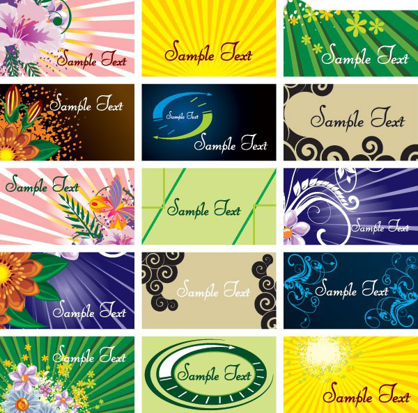 EPS格式,含JPG预览图,关键字:矢量卡片,名片,卡片背景,花朵,蝴蝶,花纹,植物,放射线,矢量素材。