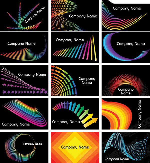 EPS格式,含JPG预览图,关键字:矢量卡片,名片,线条,幻彩背景,箭头,扭曲,拉伸,旋转,矢量素材。