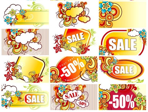 多款潮流销售打折标签矢量图