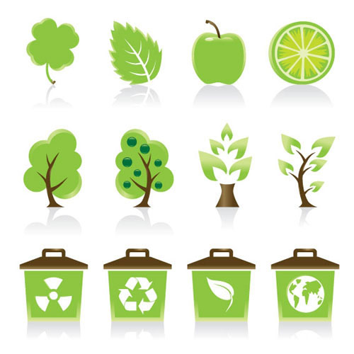EPS格式,含JPG预览图,关键字:树叶,苹果,柠檬,树木,垃圾桶,房子,绿色,春天,水底,嫩叶,发芽,地球,汽车,环保标志,矢量素材。