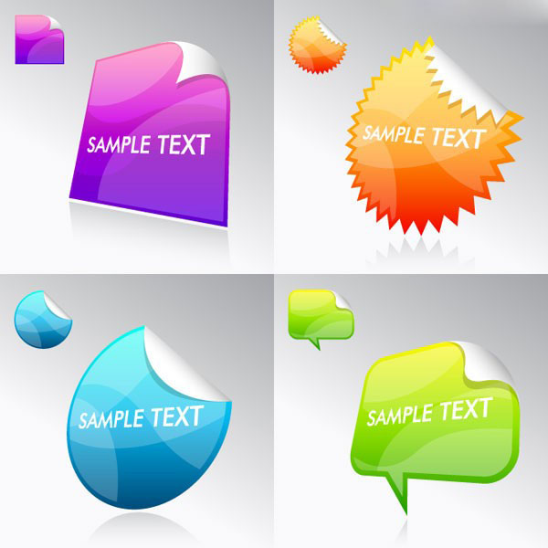 4款五颜六色的web2.0折角标签矢量图