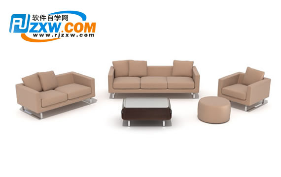 沙发组合3D模型由软件自学网免费提供下载,请使用3DMAX 9.0以上的版本打开。