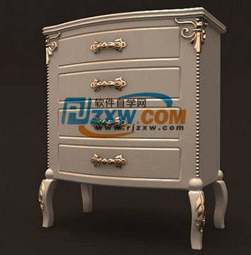 欧式柜子3D模型由软件自学网免费提供下载,请使用3DMAX 9.0以上的版本打开。