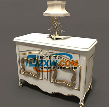 白色金边欧式床头柜3D模型由软件自学网免费提供下载,请使用3DMAX 9.0以上的版本打开。
