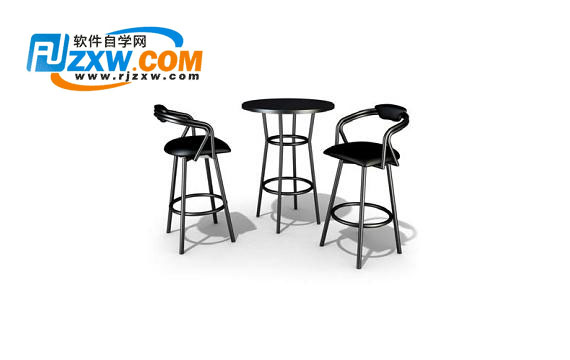 高脚桌椅3Dmax模型由软件自学网免费提供下载,请用3dmax9.0以上的版打开。