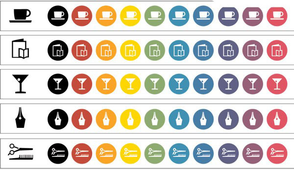 理发工具,剪子,酒杯,笔尖,咖啡杯,矢量图标