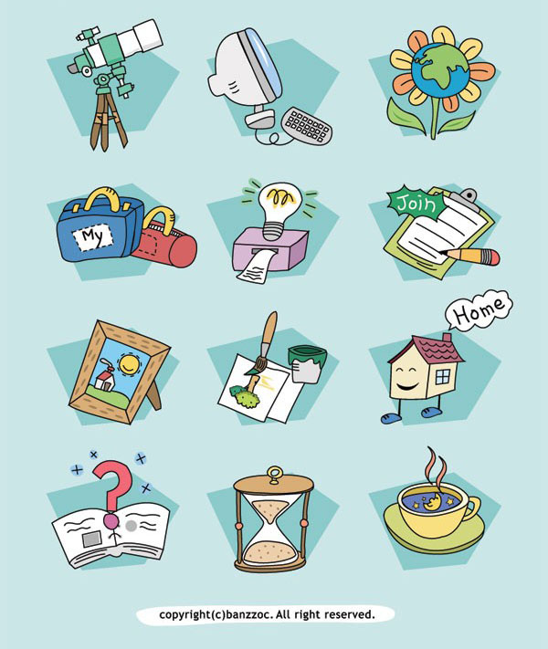 AI格式,含JPG预览图,关键字:沙漏,咖啡,画框,Home,电脑,天文望远镜,儿童卡通,韩国图标,矢量素材、