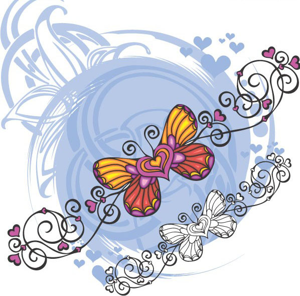EPS格式,含JPG预览图,关键字:素材,矢量蝴蝶,漩涡,心形,爱情,彩蝶,潮流元素,矢量素材。