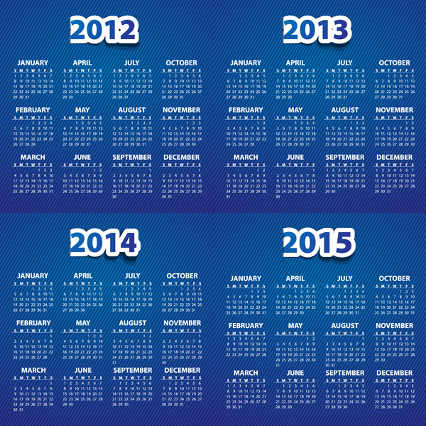 AI格式,含JPG预览图,关键字:牛仔布,质感,蓝色,日历,2012-15年历,矢量图