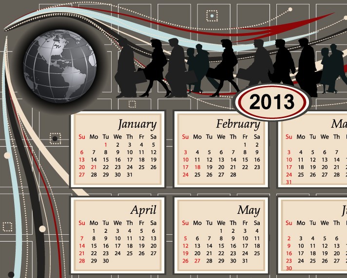 AI格式,含JPG预览图,关键字:日历,人物,剪影,商务,地球,方块,时尚,商务人士,矢量图