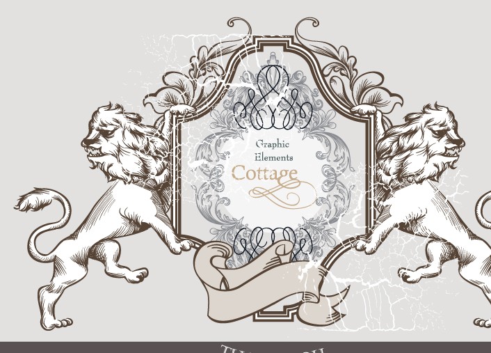 EPS格式,含JPG预览图,关键字:盾牌,狮子,雄狮,徽章,旗帜,花卉,花纹,欧式,矢量图
