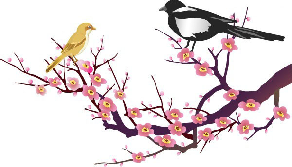 中国古典吉祥图案喜鹊登梅素材矢量图