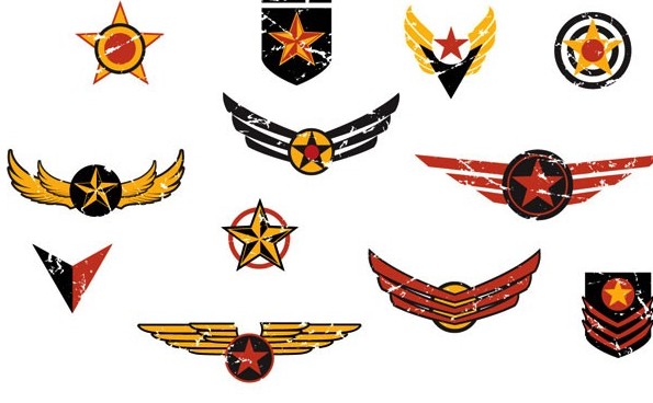 EPS格式,含JPG预览图,关键字:矢量花纹,纹样,徽章,怀旧风格,复古,星星,飞行,图案,矢量图